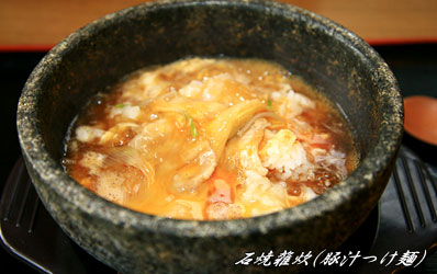 つけ麺の残った汁で石焼雑炊が出来ます。 |