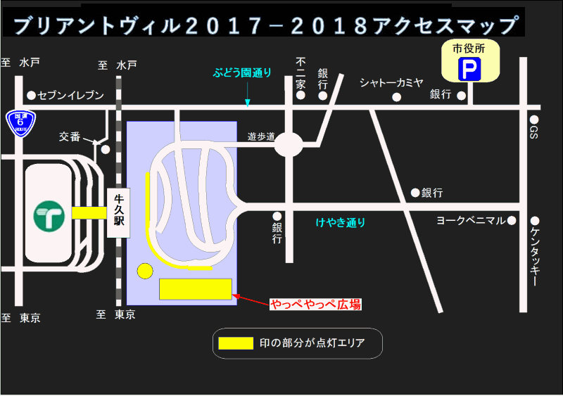2017年12月2日(土)から2018年2月18日(日)までの毎日17:00からJR牛久駅周辺がイルミネーション点灯されます。
