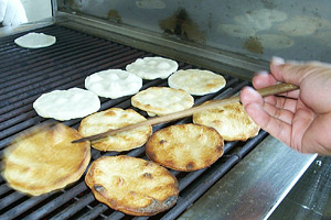 手焼きせんべいと団子を販売します。