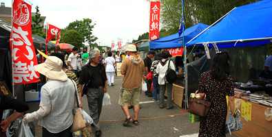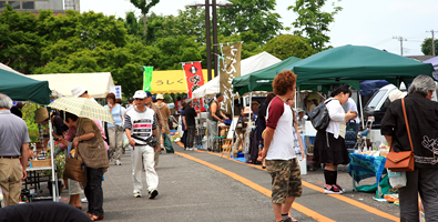 うしくゴッ多市は年に5回(2月・4月・6月・10月・12月の第二日曜日の午前9時から午後2時)開かれ、70前後のお店が牛久市中央生涯学習センター駐車場に所狭しと軒を連ね、みなさんのご来場を待っています。お店のジャンルも飲食、日用品、古着、花、植木、おもちゃなど多種多様で、一軒一軒お店をのぞくだけでも時間の経つのを忘れてしまいそうです。