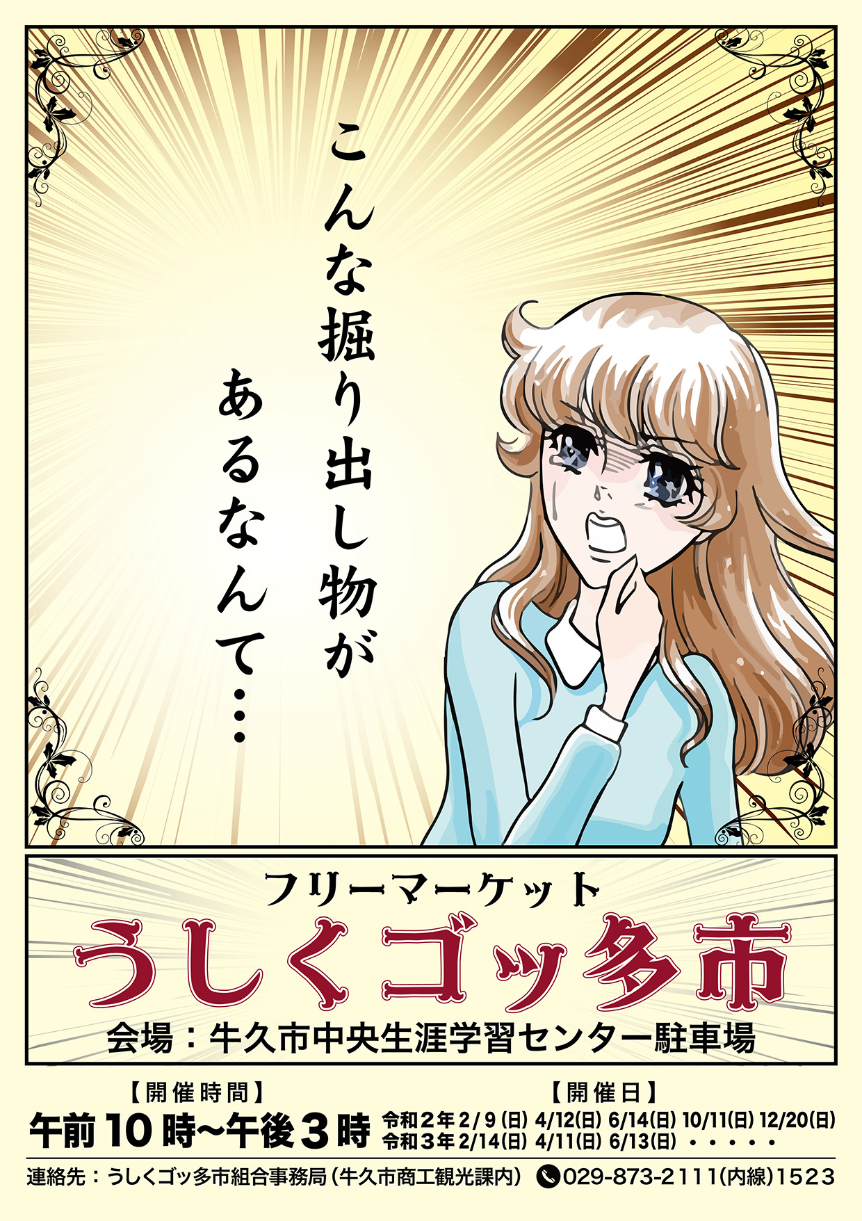 | 令和4年2月13日(日)に予定しておりました「うしくゴッ多市」ですが、新型コロナウイルス感染拡大防止の観点から中止とさせていただくことになりました。皆さまのご理解ご協力をお願いいたします。 |