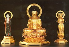 發遣門を通り抜けて振り返るとその楼上には、釈迦三尊の姿を拝むことができます。(写真下) |