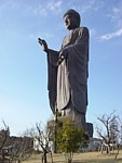 大仏様は青銅でできており将来(50〜100年後)は現在の古銅色(左の写真の左側)から青銅色(左の写真の右側)へと色が変化していきます。 |